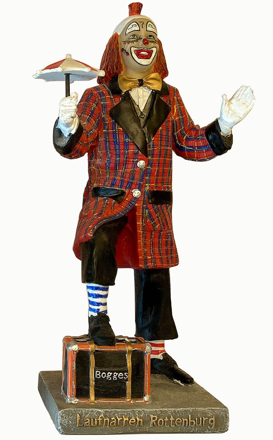 Unsere liebevoll gestalteten Figuren für Fasnet erreichen eine Höhe von etwa 25 Zentimetern. Jede Figur wird aus Polyresin, einem hochwertigen Kunstharz, das im Volksmund oft als «flüssiges Holz» bezeichnet wird, hergestellt. Nach dem Gießprozess wird jede Figur von Hand bemalt, was ihnen ein einzigartiges und lebendiges Aussehen verleiht.